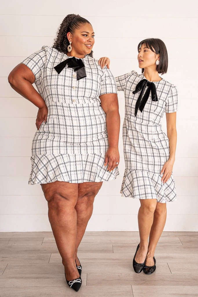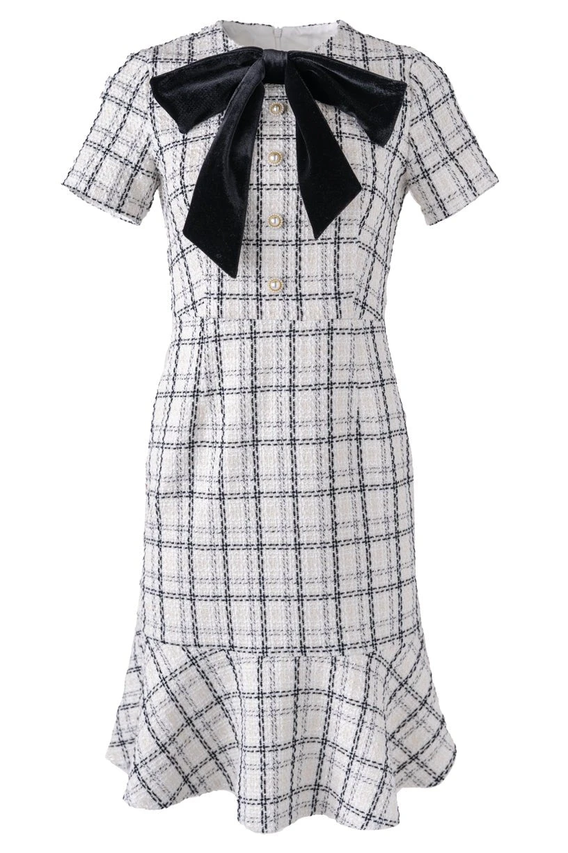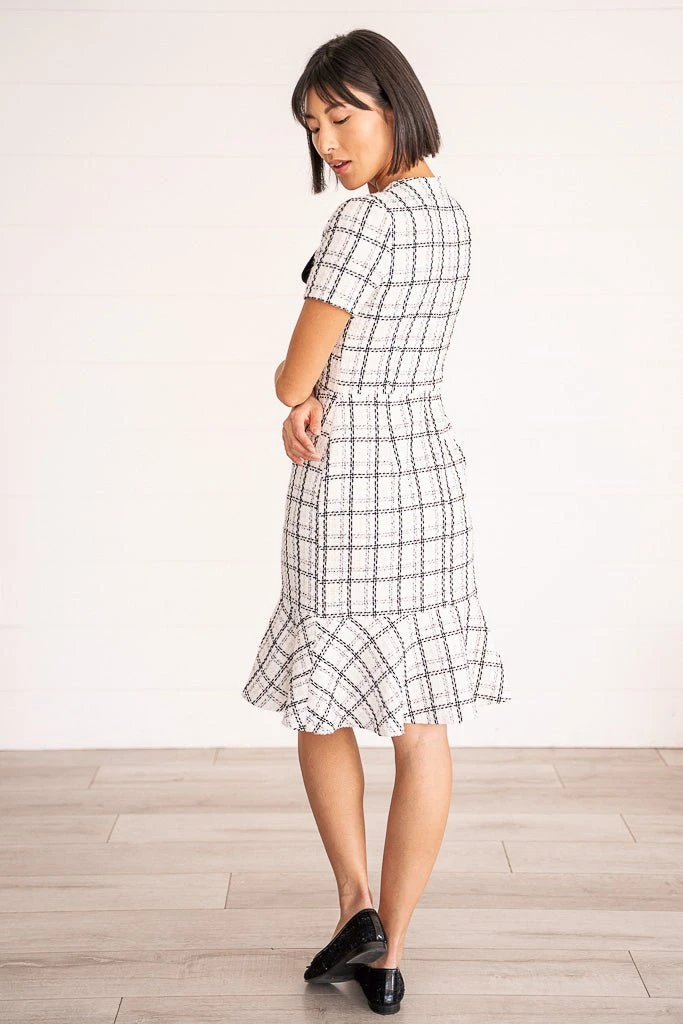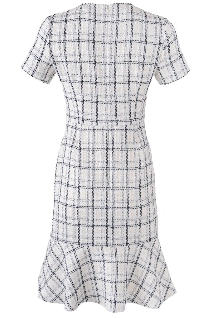 white tweed knee length dress