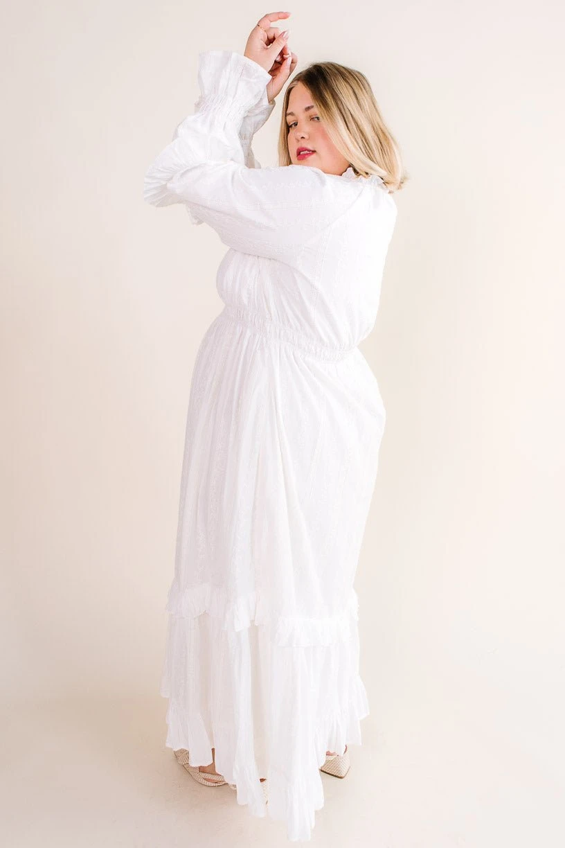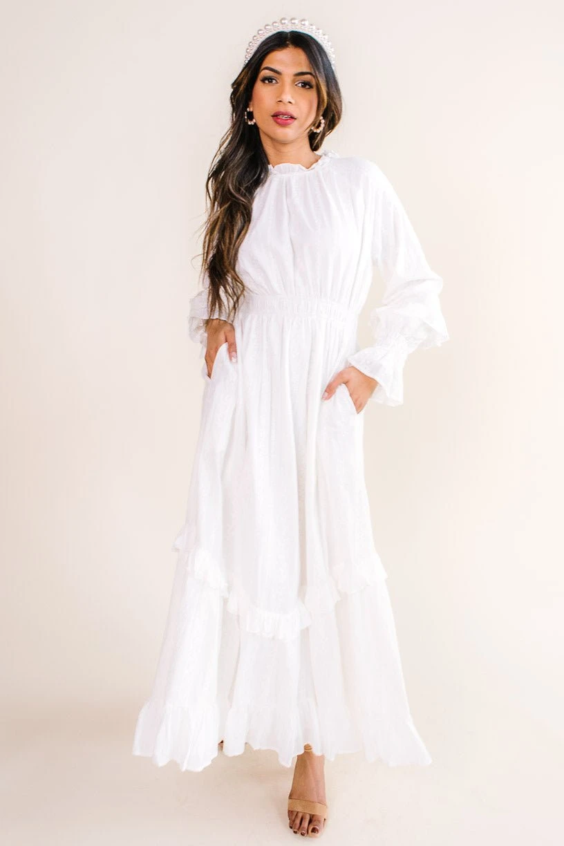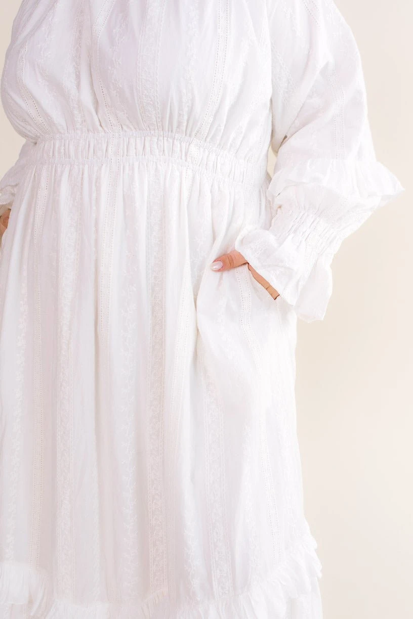 white eyelet cotton long sleeve maxi dress